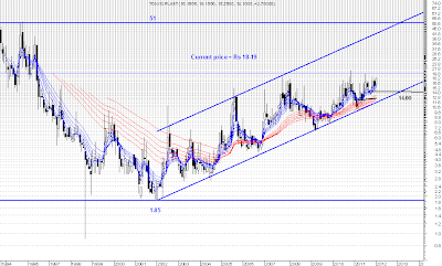 This stock is targetting the upper trendline. CMP Rs 18.10.