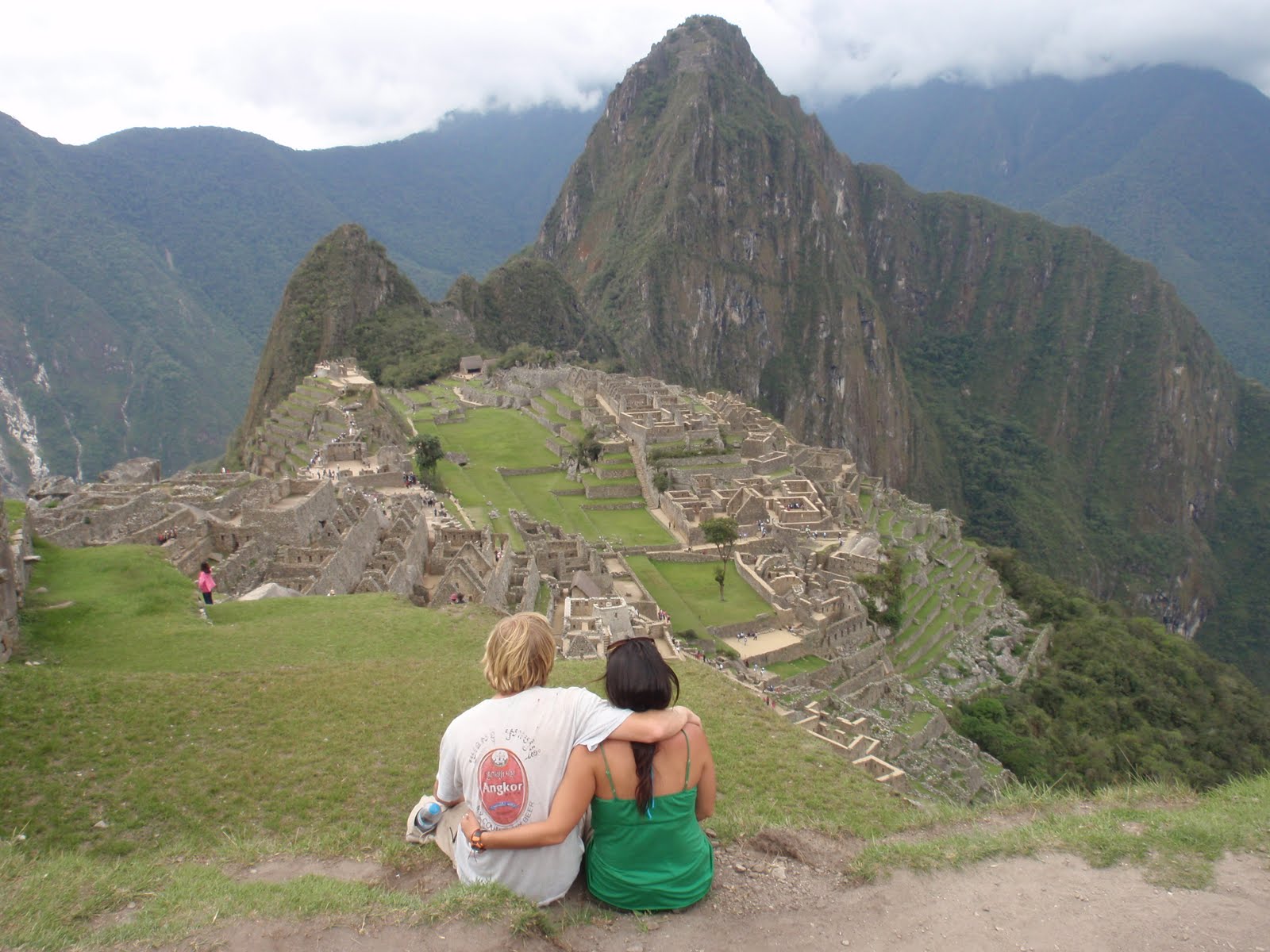 With my belly full of giant hamster meat Viviana and I hopped on the 8pm bus to sart our alternative approach to Macchu Piccu. As I mentioned before, the typical route is far too expensive for our stretched out travel budget, so our new plan was to take the overnight bus from Cusco to Santa Maria, arriving at 2AM. From there we hop in a collectivo (shared van) to the small town of Santa Theresa, arriving at 3AM. At this point we lay out the sleeping mats in the middle of the main plaza and take a nap until 5AM, when we catch a ride with some workers out to the hydroelectric plant. From the hydroelectric plant we walk along railroad tracks for 3 hours until we reach the town of Aguas Calientes, the typical starting point for the final climb to Machu Picchu. Despite our haphazardly planning and a few horrifying cliff-side bus rides, our plan worked flawlessly and only set us back about $12 each. However, arriving at Aguas Calientes was only part of the battle, and the next hurdle would be getting to the gate early enough to be able to climb Wayna Picchu, the photogenic mountain in the background of every Machu Picchu photo worth bragging about. The lucratively popular ruins receive an average of 2500 people per day and only the first 400 are allowed to climb Wayna Piccu. In order to make it in this group without staying at the $600/night hotel or taking an equally overpriced tour, you have to line up at the main gate at 5AM and then hike up 1600 odd-shaped stone steps to an office where you get your ticket stamped. Of course this was our plan, and when we arrived at the gate we were surprised to see that not only were there about 40 other people waiting, but a number of them were decked out in shiny new jogging shoes and spandex pants, ready to race to the top. At 4:50 the gate opened and we all started the ascent. After a couple flights I realized I was in the lead, and the people behind me were starting to pant heavily. Then suddenly I heard Viviana yell out from a half flight of stairs below ´Go Alex Go!´ At this point my competitive spirit kicked in and I decided to try and go for the gold. Employing my disgruntled teenager hiking style (jacket dangling from wrists, arms flopping around randomly) I quickly beat everyone to the top, only to find another 20 people from the hotel already waiting. Viviana came up soon after with a respectable 6th place and after another 30 minutes in line we started into the much anticipated Incan metropolis. At this point it was difficult to believe that anything could live up to the hype that precedes Machu Picchu, but as soon as the city unfolded before us we were completely astonished. The complexity of the buildings and sheer area it consumes is impressive, but what really sets it apart is the location. The ancient university, temples, houses, terraces, and other stone structures are just perfectly perched on the top of a mountain that drops steeply away on all sides. Upon our arrival there was a mist floating through the area that added a touch of mysticism to the experience. Soon after walking through the main gate we flashed our stamps and started climbing Wayna Picchu. An hour more of steep stone steps and we found ourselves on the top of the mountain, which is also covered in ruins and feels like a fortress in the sky, looking down onto the main ruins below. We passed the day exploring the various temples, astronomical observatories, and ceremonial fountains before finally returning to the real world below in Aguas Calientes. A short dip in the local hotsprings followed by a good nights sleep prepared us for the return journey along the railroad tracks, back to Cuzco and the Sacred Valley.