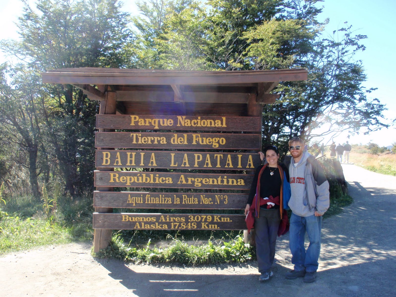 continuing south out of town. So the next morning we continued down the road into the Tierra del Fuego National Park. With Ricardos help we entered the park before the toll booth opened and were dropped off near the entrance. After a few hours of walking the road came to a sudden dead end in a parking lot and finally the significance of this impasse started to sink in. My original dream of crossing the Americas is complete. From this point on I won´t be going south again, only north, back, towards home. We passed an hour at the end of the dusty road, sharing memories from the trip and contemplating the time and effort it had taken to get down to the tip of the continent without leaving the ground. Here´s a few numbers I have crunched on what it took me to reach the bottom of the continent: