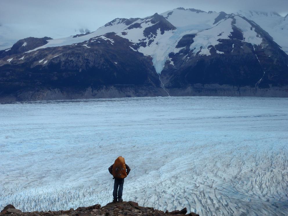 campsite that was truly the highlight. After arriving at the second site we dropped off our bags and went straight up the steep trail to see the extraordinary Fitz-Roy peak. When we started we were bathed in sunshine, but by the top of the trail it had turned to a complete blizzard and we were unable to see even the closest shore of the lagoon that leads to the mountain. Discouraged and exhausted we returned to the camp and turned in for the night. The next morning we awoke to more glorious sunshine, and although the ascent was painful, we decided to hike up to the lagoon another time to try our luck. This time it was gorgeous. The Fitz-Roy peak juts out of the mountain range at a near 90 degree angle like a giant blade of stone. We snapped a couple hundred photos and continued on, making our way to the final campsite of the trip, and finally back to El Chaltén to continue on to El Calafe.