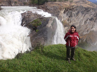 after exchanging a few words with our altruistic chauffer we found out that he owned the entire piece of property for many miles south of Cochrane. He laughed at our idea of camping near the lake and insisted that we stay at a special spot on his property. He parked the car and led us through a gate over to a small field at the top of a tremendous waterfall, where he left us to set up camp and cook our pasta in bliss. The next day we started out again, thumbing the wind and playing hacky sack to kill the time. A couple hours of nervous waiting on the deserted road and we found ourselves the sterotypical ride in the back of a pick up truck. Here we found another hidden merit of hitchhiking: the view. This 3 hour ride took us through absolutely stunning canyons filled with glaciers, waterfalls, and all along the largest river in Chile. We arrived in Tortel rocking the Ace Ventura hairstyle, but smiling from ear to ear.
