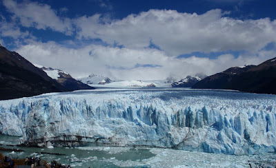 El Calafate is yet another tourist trap, this time fueled by the hulking Perito Moreno glacier located outside of town. In El Calafate they charge for everything, and it took all our skills to preserve our delicate budget. We camped in the municipal campground and hitchhiked our way to the glacier with some traveling Slovakians. One glimpse of the sparkling glacier and the popularity of the nearby town is immediately justified. The Perito Moreno glacier pours out of the southern continental ice field down into the turbid Lake Argentina like a giant icy tongue lapping up cold milk. Perhaps even more impressive than the initial site is the activity of the glacier, as every couple minutes a massive cracking sound is heard and often followed by a huge boulder of ice falling into the lake and sending immense waves across the surface of the lake. A ride on the tour boat brought us up close to the face where we could stare up at the 180 foot high walls and appreciate the intense hues of blue from the shattered ice. Once again a few porteños came to our rescue and carried us back into town where we hurried to escape the dangerous tourist trap.