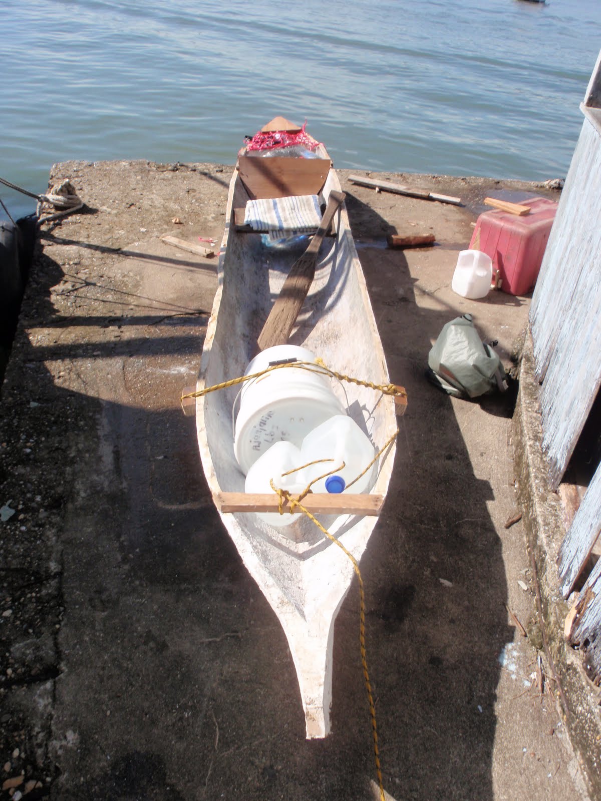 The locals along the river all use simple dug-out canoes to get around, and I decided this was the best way for me to explore as well. With a few days of haggling with the locals I was able to secure an overpriced and completely broken canoe. Another two days and I had an overpriced and poorly repaired canoe, complete with a watertight bucket and improvised storage compartment.
