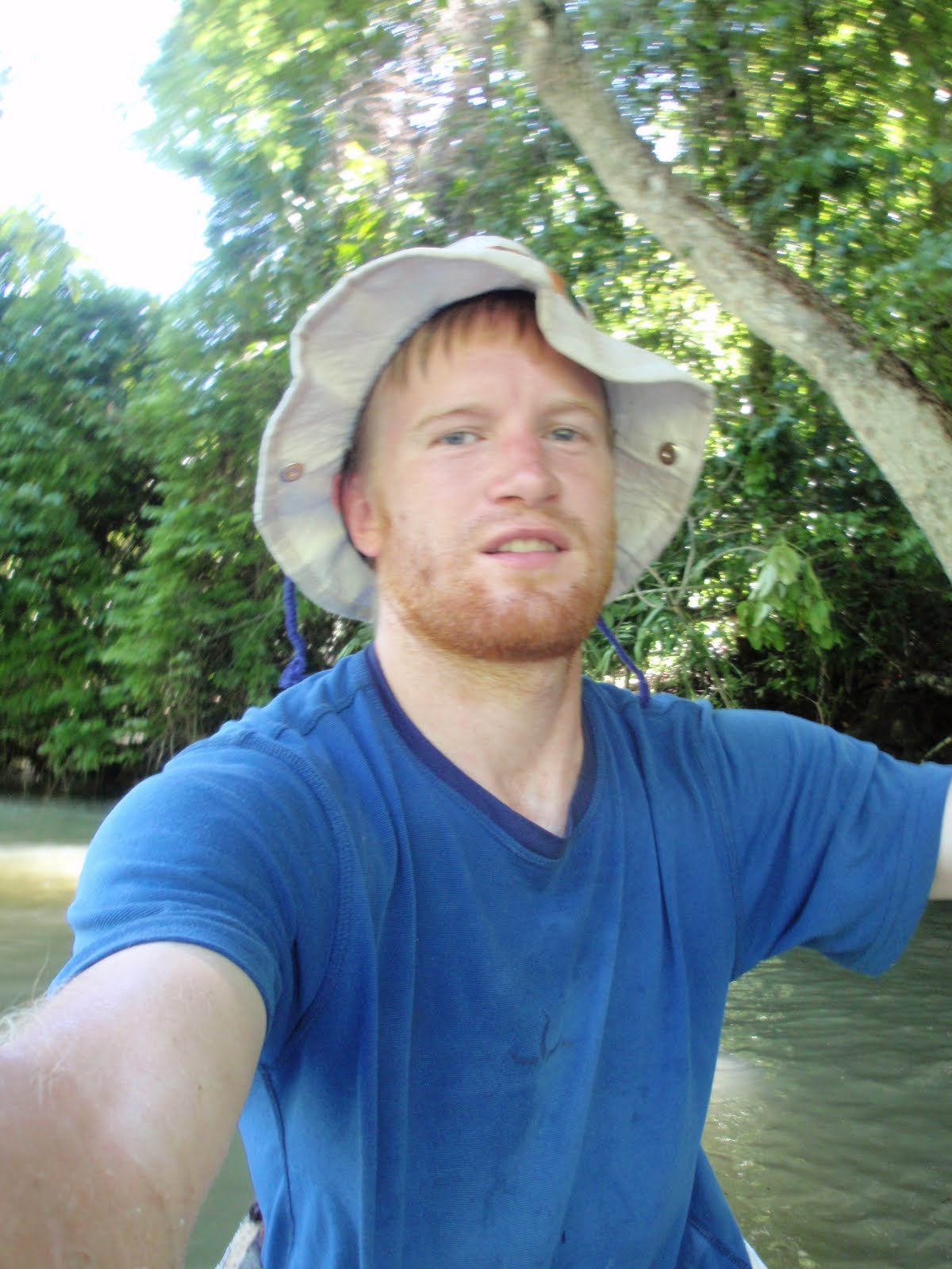 After paddling for about 4 hours I realized I had passed the river that led to the Biotopo by a couple of miles, and I could already see the waves picking up as a storm approached from the south. My canoe began to take on a bit of water with each wave, and I realized I was in the most remote section of the journey, with no houses for several miles in each direction. I weighed my options and decided it would be better to try and camp out on the riverbank, and start again in the calm morning waters, than to try and row back, risking a potentially dangerous capsize. The jungle around the river is very dense, and there is little actual land, mostly just intertwined root systems. After a bit of seaching a found a small plot between two trees and set up my hammock. There were thunderstorms all around me, but barely a rain drop fell on my hammock. I was feeling pretty good about the situation until about 1am when I heard water right underneath me. I realized the river level had been increasing, and if it raised another 2 inches my piece of land would be submerged. I prepared my things for an emegency evacuation, but decided to hold out and see if the river would recede. I marked the water level with my machete, and after about an hour I could see that it was starting to back off. I then slept for about 2 hours, woke up as soon as possible at 430am, and started rowing for Rio Dulce. 7 hours later I arrived with a sore butt and blistered hands, but also a big smile and a nice tan.