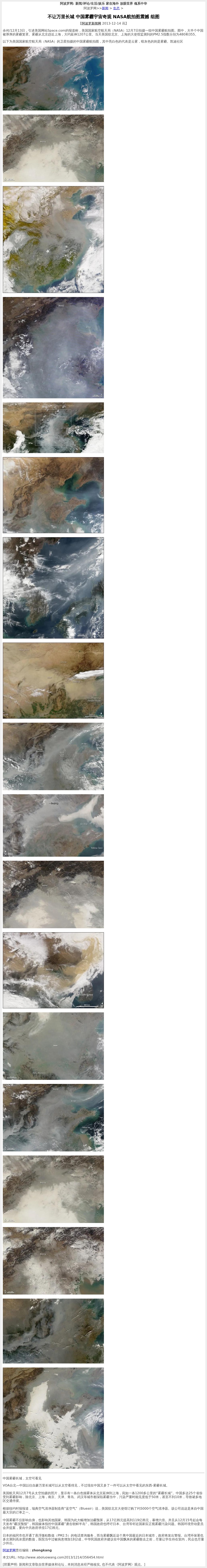 中国雾霾长城,太空可看见