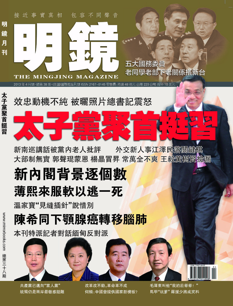 Posted: 18 Mar 2013 02:03 AM PDT 內容提要: 看星空唱高調 被罵一代偽君子真奸相 溫家寶心有不甘 周恩來真傳弟子 懺悔流淚宛如去年薄熙來 三鞠躬:沒洗清 27億美元巨產污名 李克強小心接過爛攤子 怎樣分利:經濟內閣面對公眾壓力 張高麗汪洋看重外商和民企 幾億農民變巿民 城鎮化大商機 兩會成“二會” 名人成呆瓜 笑翻天 谷開來患有精神病 母親寫信求助李源潮 革命岳母鼓勵薄熙來 「公著千古,私者一時」 中共“裸官”超過百萬 【外參月刊】(印刷版)長期訂閱 【外參雜誌社】(電子版) 專頁 (台幣定價。電子版接受台幣、人民幣、美金付款。) |