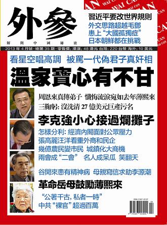 Posted: 17 Mar 2013 01:41 PM PDT 《外參》編譯 文道喻 孔子編寫完《春秋》後說:“知我者,其惟《春秋》乎!罪我者,其惟《春秋》乎!”意思是說,關於這本書,後人肯定褒貶不一、毀譽參半,但只要自己認為是對的、是有價值的,不論別人如何評說,都應堅定做下去,因此,“知我罪我,其惟春秋”,成為一句用以自我評鑑的用語。兩千多年後,第十一屆全國人大五次會議閉幕後的記者招待會上,溫家寶對記者說,他為國家服務整整45年,投注全部熱情、心血和精力,勇於面對人民、面對歷史,知我罪我,其惟春秋。如今這位最親民、同時也可能是最引發正反討論的總理溫爺爺將卸下職位,外國媒體如何“知他”、如何“罪他”呢? 在流亡作家余杰眼中,溫家寶是一位影帝。 以“政治改革者”以及“人民總理”自居 《南華早報》(South China Morning Post)認為,過去十年,溫家寶一直是個有爭議的人物,贏得國內同等程度的讚揚與批評。同情者和崇拜者會說,溫是貨真價實的改革者,時常將人民放在心中;反對者質疑其誠意,畢竟他經常辜負改革承諾,無法滿足公眾期望。十年前當溫接任總理之際,中國經濟才剛起飛,溫被普遍視為一個謹慎又熟練的技術專家,對政治風向極其敏感,懂得快速轉換立場,並取得共產黨內不同派系的信任。 兩個五年任期後,71歲的溫家寶來到下台時刻,身為國家領導人,他的坦率和直言不諱,令人印象深刻,特別是呼籲政治改革方面。但姑且不論真心與否,這也讓他成為孤獨的鬥士,誠如杜克大學(Duke University)中國研究項目主任劉康告訴《南華早報》,溫家寶長久以來努力鞏固的政治遺產就是讓自己以“政治改革者”以及“人民總理”自居。 最近幾年溫家寶呼籲政治改革的一系列講話大多來自海外,如此情況讓他看起來更像一位異議人士或人權活動家,而不是信奉共產主義的官僚。2011年在英國演講時,曾指出“在人類歷史上,在反對封建專制鬥爭中形成的民主、法治、自由、平等、人權等觀念,是人類精神的一次大解放。只是不同社會、不同國家,實現的途徑和形式有所不同”,又於2007年以個人名義發表《關於社會主義初級階段的歷史任務和我國對外政策的幾個問題》,提到“科學、民主、法制、自由、人權,並非資本主義所獨有,而是人類在漫長的歷史進程中共同追求的價值觀和共同創造的文明成果。” 曾幾何時,民主、法治及自由等詞彙,也成了朗朗上口的政治短語,但批評者抨擊,最近兩年溫家寶處心積慮培養公眾形象,打造改革者角色,藉此平衡共產黨領導過於保守的天性。 支持溫家寶的人則認為,溫真實代表共產黨內的反對聲音,因為中央政治局委員甚至常委,早就為了該不該政改、該怎麼政改吵得不可開交。有趣的是,溫家寶的言論與黨內和社會中要求改革的聲音相呼應,當前許多基層官員、學者和政府智庫也紛紛加入行列,形成一股浪潮。 最近兩年溫家寶處心積慮培養公眾形象。 期望越高,失望越大 中國人民大學政治學教授張鳴向《南華早報》表示,溫家寶選擇到海外提出大膽訴求,加上這些言詞有時也面臨審查命運,在在說明溫本人與其他高級領導人格格不入。舉例來說,國家主席胡錦濤曾清楚指示“不走封閉僵化的老路,也不走改旗易幟的邪路”,強烈排除西式民主,且再三暗示結束一黨專政的徹底改革不可能實現。 “在位長達十年,可是,交出的成績單並不好看,說他不稱職或只會給予虛偽承諾也許不為過,” 諾丁漢大學教授曾銳生(Steve Tsang)告訴《南華早報》:“當他甫就任時,很多分析家包括我在內,都以為他有能力、有意願致力於政治變革。”只可惜期望越高,失望越大。 如果要以溫家寶一己之力對抗緊抓權力不放的共產黨恐怕有些力不從心,但針對政治爭議性較低的經濟領域來看,其評價同是好壞各半。過去十年,中國經濟增長率維持在顯著高峰,是很多國家達不到,甚至望塵莫及的境界,這便是最值得說嘴之處。2002年,中國只是全世界第六大經濟體,現在排名第二,隨時準備超越美國,維持經濟引擎持續運轉遂成為接班的李克強的首要任務。 於此同時,中國還是世界上外匯儲備最多的國家,達3.3兆美元,世界第一出口國,汽車生產與消費首屈一指,最長的高速鐵路系統也在中國,這些無疑都是溫總理主政下的成果,令數億人擺脫貧窮苦難,生活水平提高,人均收入從800美元增長至5000美元,2010年,中國更進一步取代美國晉身全球經濟增長的最大貢獻者。 然而,2003年掌權後,溫家寶曾許諾要解決經濟結構中的不合理、減少收入差距與緩和環境破壞,十年之後,我們卻只看見嚴重汙染、日益惡化的經濟體系及不斷擴大的貧富差距,換句話說,溫家寶不僅未能兌現政治支票,互聯網上還有人斷言,胡溫十年是中華人民共和國歷史上腐敗、汙染及收入不均“最嚴重時刻”。 溫家寶也沒有繼續前任總理朱鎔基的改革勢頭,這些事項包含減少官僚的經濟影響力、打破國有企業在諸多高利潤行業的壟斷現象與市場自由化等。曾銳生表示,事實上,溫沒有什麼好留芳千古的,“經濟看似強勁,但仍然存在一籮筐亟待解決的問題。”他說:“經過十年,經濟再平衡的任務,只有變得更嚴峻、更艱難,這是溫總理主要遺產之一。” 醜聞令英名毀於一旦 另一方面,房地產過熱同是中國經濟的一大病灶,由商人和地方官員共同炒作下使城市地區的房屋價格飆升,國務院可說在這波抑制中完全失