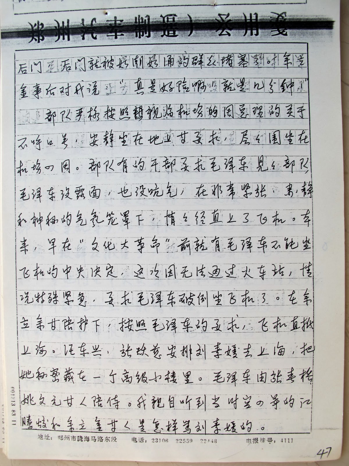 Posted: 26 May 2013 05:33 AM PDT 《新史記》舒雲 專稿 《新史記》编者按:中國大陸學者、作家舒雲女士整理的《林豆豆口述》一書2012年8月由明鏡出版社出版之後,尤其是在《新史記》第9期摘選其中兩篇林豆豆的 申訴文章之後,在海內外林彪研究和“文革”研究學者中引起不同的反應。《炎黃春秋》副主編劉家駒先生在一些媒體上撰文,對《林豆豆口述》及其整理者提出相 當尖銳的意見,明鏡相當重視,在旗下的明鏡歷史網、明鏡新聞網都予以轉載,以期引起更多學者、專家和關心歷史的讀者們關注。《林豆豆口述》一書的整理者舒雲,寫來文章,並配上大量林豆豆信件影印件,回應劉家駒的批評。 林豆豆寫的這些資料可以看成當事人對那段歷史的個人認識和回憶,是那個特殊歷史環境下的產物。上個世紀80年代初期,林豆豆沒有任何資料可以參考,他們甚至 還生活在黑暗當中,受到嚴密的監控,毫無人身自由。作為個人的申訴材料,它們難免存在這樣或那樣的問題,如個人回憶不夠準確,一些評述不夠客觀,急於為父 親申冤而疏於理性的思考等等,這些都是可以理解的,更何況這些申訴材料還可能涉及“文革”當中的某些要人,而這些人在粉碎“四人幫”後仍然活躍在當時的政 治舞台上,林豆豆在申訴時也不能不有所顧忌,無法暢所欲言。然而拋開這些內容,我們還是可以從中看到許多人們以往不瞭解的歷史,值得研究者們在從事“文 革”史研究時認真思考、借鑑。 ![]() 林豆豆的丈夫張清林。 我如何收集該書資料 我見到林豆豆的時間,大概是上個世紀90年代前後。以後又多次見過她,她介紹並帶我採訪解放後林彪第一任秘書姜樹華,空軍34師服務隊副隊長孫福榮等。林豆 豆也到我家來過,送給我一本《我所知道的葉群》。就在這時我有幸看到了林豆豆的四本上訴材料,有幾百頁之多,字跡秀氣工整。作為資料,我有意複印保存了一 份。開始時我一直以為這些都是出自張清林的手跡,因為張清林對我說過申訴材料都是林豆豆口述,張清林抄寫。我將《林豆豆口述》的部分原件貼在我的博客(舒 雲探訪“九一三事件”)上之後,澳大利亞莫納士大學的孫萬國教授來函告訴我,他也保存有林豆豆的三件草稿複印件,字跡顯得較亂,有增刪的痕跡,信紙背面甚 至也寫滿了字。他還告訴我,我貼出的原件就是林豆豆的親筆抄件。 80年代中期,林豆豆在邱會作大兒子邱路光鼓勵下,到北京上訪,住在萬壽路中央組織部招待所。邱路光帶林豆豆去見時任中組部副部長的曾志。在曾志幫助下,時任總書記的趙紫陽在林豆豆來信上作了批示,同意林豆豆回北京,後來林豆豆被分配到中國社會科學院近代史研究所。 林 豆豆到北京上訪,隨身帶著裝滿上訴材料的小黑箱子。因為怕丟了,曾在邱會作大兒子邱路光那裡放過幾天,也曾存放在林彪秘書于運深家中。于先生告訴我他看過 林豆豆的全部申訴材料。為了慎重起見,我在打印出《林豆豆口述》的書稿後請于運深審閱了一遍。于先生也證實,我公佈的是林豆豆的原件,除了個別文字的整 理,沒有增刪。 一言以蔽之,這些材料都是出自林豆豆和張清林的手筆,是極為珍貴的手稿,記錄了那個特殊年代他們為林 彪冤案奔走呼號的聲音。我對這些申訴材料懷有很深的感情,引用過其中一些片斷。隨著這些年來我在林彪事件探索、研究方面的進展,我心中常有一種想法,即將 林豆豆當年向中央申訴的內容、將林彪事件發生的前前後後的過程向社會披露,讓廣大的民眾知曉那段曾經發生過的歷史,知曉林豆豆在當年特殊環境下所做的一 切。即使這些材料還存在這樣或那樣的不足,我還是希望原汁原味地奉獻給讀者,讓廣大的讀者和研究者去鑑別,而非永久地封存在我的箱底。 劉家駒對我的指責並非事實 劉 家駒在《我寫林彪傳的遭遇》一文中,借張清林之口說《林豆豆口述》一書“弄虛作假,編造史實,未經他和豆豆的允許就貿然出書”。這絕不是事實!就在 2013年3月上旬,我曾就此事當面問過張清林。張清林否認他說過舒雲“弄虛作假,編造史實”。我再進一步追問,劉家駒自稱《給最高人民檢察院檢察長黃火 青的信》裡關於“七二○事件”的內容是劉本人所寫,那麼這部分內容到底是誰寫的?張清林說他曾當面對劉家駒說過,給黃火青的信是“我(張清林)和林豆豆寫 的”。 至於劉家駒所謂張清林說“未經我和豆豆的允許就貿然出書”,也不是事實。在整理《林豆豆口述》之前,我分別給 林豆豆、張清林打過電話,講了出書的意願,並想從他們那裡得到更多的手稿。林豆豆說:“《爸爸教我怎樣學會寫文章》一文,他們要發表也沒有經過我。”言外 之意是默許了。 我又進一步問林豆豆:“李晨所著的《世紀風鈴》(2004年台北天箭出版)一書首次披露了你關於‘九一三事件’寫給中央的報告(這份報告出自林豆豆的申訴材料,收入《林豆豆口述》中)。林豆豆告訴我,這份材料披露出去並沒有經過她同意。 因 為林豆豆並沒有反對,我便開始整理林豆豆的上訴材料。但是林豆豆的四份上訴材料,成書似嫌不夠。我又幾次找過張清林,問他他手中是否還有其他申訴材料,張 清林說由於搬家多次,有的材料已經找不到了。我只好到國家圖書館尋找林豆豆的舊文,把我所能蒐集到林豆豆舊文也一併編進書裡。 《林 豆豆口述》由明鏡出版社在香港出版後,社會反響很大,