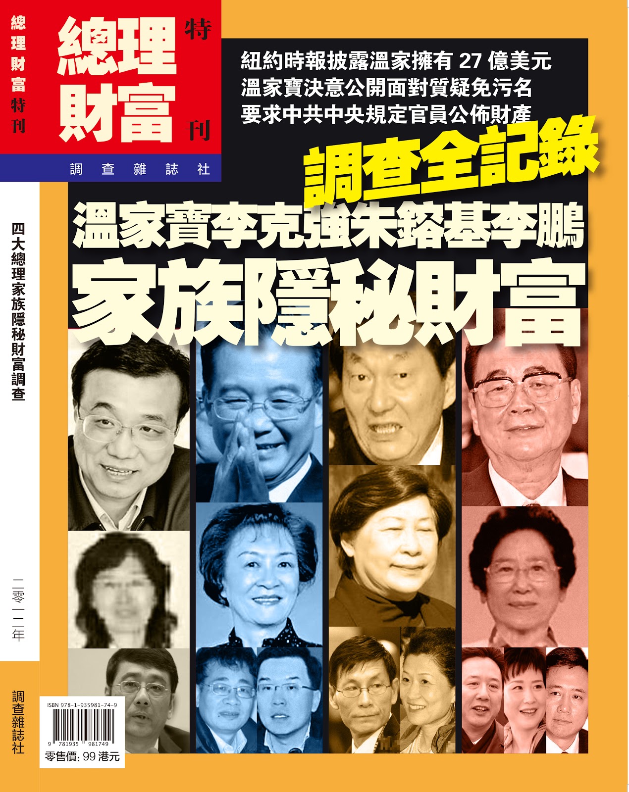 Posted: 19 Nov 2012 01:08 PM PST 《調查》(第2輯) 總理財富 (電子版) http://www.pubu.com.tw/periodical/16679?apKey=fedd22f528 (台幣定價。電子版接受台幣、人民幣、美金付款。) 內容簡介 紐約時報披露溫家擁有27億美元 溫家寶決意公開面對質疑免污名 |