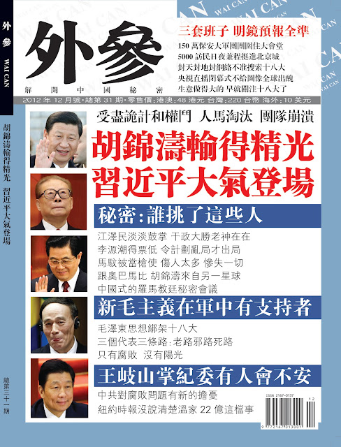 Posted: 24 Nov 2012 06:01 AM PST 《中國密報》未普 秋高氣爽之際,北京政壇卻籠罩著極度的混沌、焦慮、悲觀、詭異和不安。中共十八大即將舉行。 習近平即將接任胡錦濤,任中共總書記和國家主席。對此,外界已無懸念。有懸念的是,在中國政治光譜中,習近平到底站在哪兒?他的政治觀點和政治主張是什麼?他將帶領中國向何處去?他能否打破中共體制的慣性和利益集團的羈絆,大刀闊斧的實施政治改革?探討這些問題的答案,在仍然是人治而不是法治的中國,具有特殊的重要性。 |