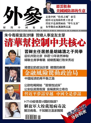 Posted: 15 May 2013 11:41 PM PDT 內容提要: 朱令毒案室友涉嫌 習總人事室友主掌 清華幫控制中共核心 習辦主任居然是胡錦濤之子同學 從杭州到北京 伴君10年依然神秘 婦聯主席爭奪戰 胡總舊屬打敗宋秀岩 總書記的政治計算 總理的麻煩 金融風險驚動政治局 中國經濟的再平衡之路 公款吃喝開始 "習慣性試探" 公安巨資買假貨 宣稱寶貝立奇功 習近平夢話穿越 中國全是夢話 H7N9疫情是M國的陰謀? 解放軍大校戴旭病毒說 關注病毒,不如關注溫家醜聞 《外參月刊》印刷版 長期訂閱: |