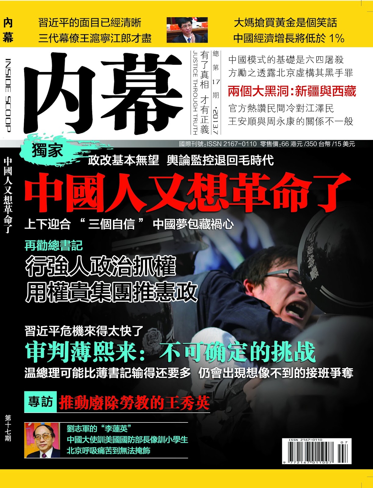 Posted: 23 May 2013 04:46 AM PDT 內容提要: 習近平的面目已清楚 大媽搶黃金是笑話 中國經濟增長將低於1% 中國模式的基礎是六四屠殺 方勵之透露其黑手罪純屬北京虛構 兩個大黑洞:新疆與西藏 官方熱讚民間冷對江澤民 王安順與周永康的關係不一般 政改基本無望 輿論監控退回毛時代 中國人又想革命了 上下迎合“三個自信” 中國夢包藏禍心 再勸總書記 行強人政治抓權 用權貴集團推政改 習近平危機來得太快了 审判薄熙来:不可确定的挑戰 温總理可能比薄書記输得还要多 仍會出現想像不到的接班爭奪 推動廢除勞教的王秀英 劉志軍的“李蓮英” 中國大使訓美國國防部長像訓小學生 北京呼吸痛苦到無法掩飾 《內幕雜誌》印刷版 長期訂閱: 【內幕雜誌】電子版 長期訂閱: (台幣定價。電子版接受台幣、人民幣、美金付款。) |