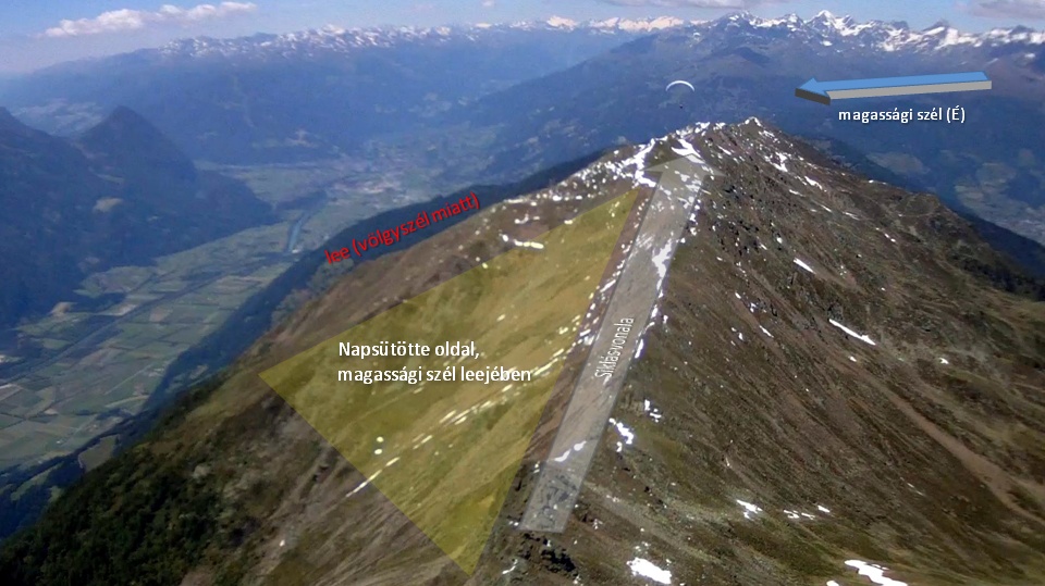 - bepróbálom a gerinc feletti siklást (remélve, hogy itt találkozik az északi szél és a napsütötte dél oldal termelte 'anyag')