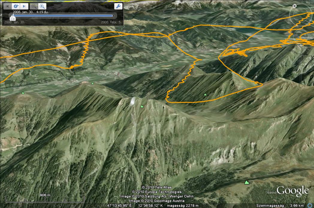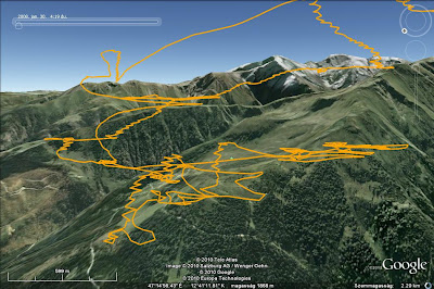 Egy kis könnyű a végére: hazafele jövet még beúsztam a völgy felett kialakuló konvergenciába - völgyszelek találkoznak itt, meg már beindult valami ordas gyogyi is mivel végig kumók sorakoztak a völgy közepe felett. Bohóckodtam meg örömködtem picit, hogy hazaértem és bezártam a háromszöget, de kedvem nem volt már lespirálozni 1000m-t, ezért szépen rásiklottam a wildkogel starthelyre, amin átbukott az addigra már lamináris északi szél, és gyönyörűen letolt -3 / -4 -el a leszállóig :)