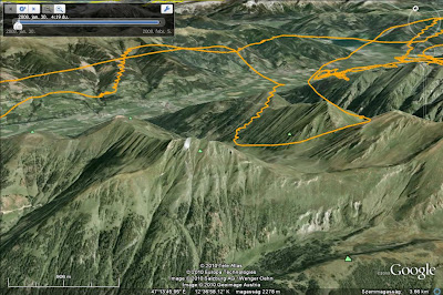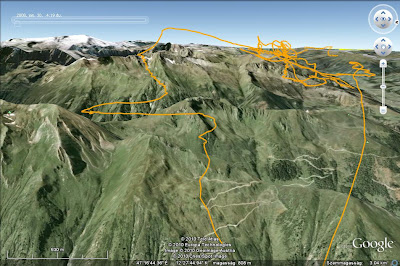 indultunk páran, de pár km után teljesen befújt az északi szél és mosott is le minket, muszáj volt a völgy déli oldalára váltani. A GE kép keletre néz, jól látszik, hogy némi nullázgatás után elindultam a völgyszéllel szembe keletnek, hogy beérjek egy a (remélhetőleg) völgyszélbe néző és napsütötte lefutó gerincet. Stabil 6-os termik volt a jutalom plafonig, a fenti video is itt készült.