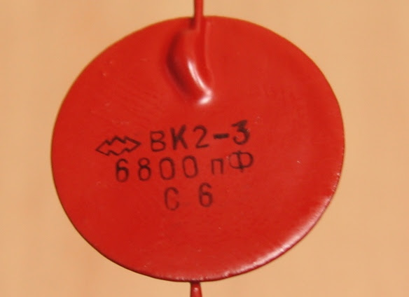 Обычно вариконды изготовляются в виде дисков толщиной 0,4—0,6 мм, покрытых красной эмалью. Для отличия от других сегнетокерамических конденсаторов на корпусе вариконда ставится голубая точка.