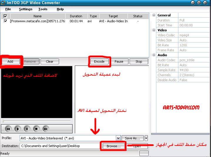 و بنضغط على encode عشان يبدأ التحويل