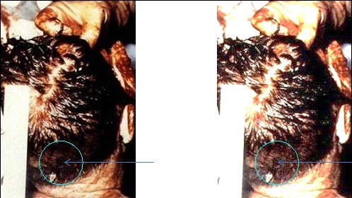 > The autopsy photographs show the back of the head to be completely intact, so they were obviously faked:
