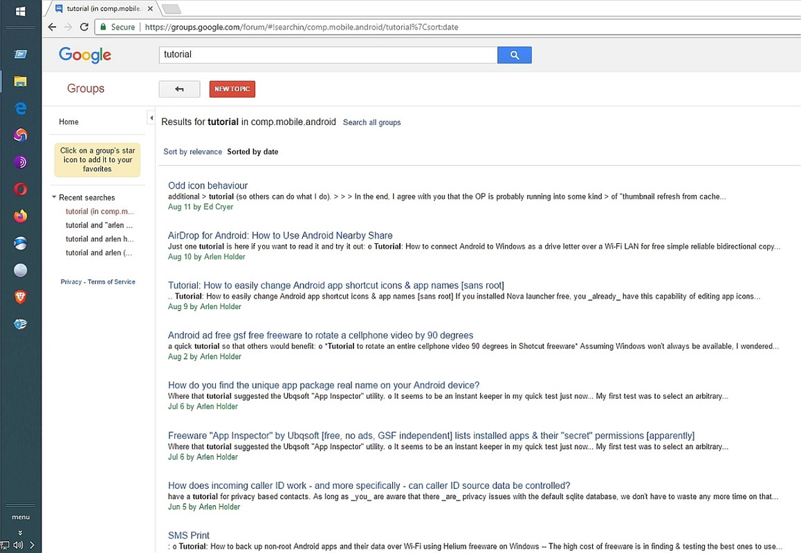 groups.google.com", but the search is