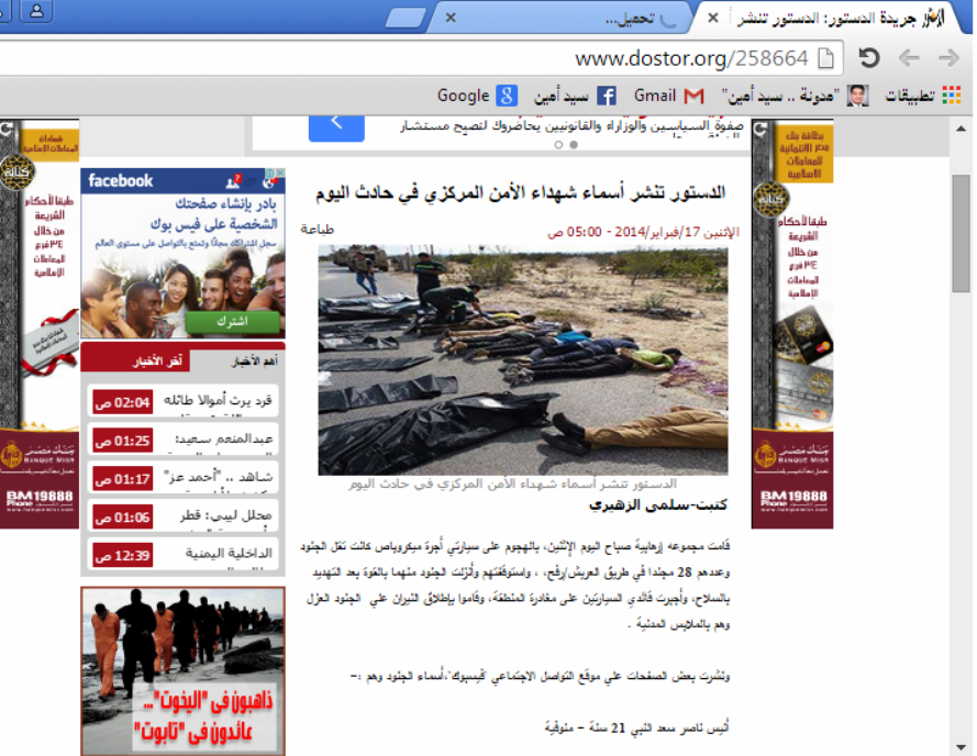 في معلومة قد يكون لها تداعيات كبيرة في المرحلة القادمة نشرت صفحة "الجبهة الشعبية - مسار" على الفيس بوك صورة لشخص يدعى أنيس ناصر سعد النبي. ...21 سنه - من المنوفيه.. قالت ان صاحبها هو ذاته الشخص الذى ظهر في فيديو اعدام الاقباط في ليبيا.