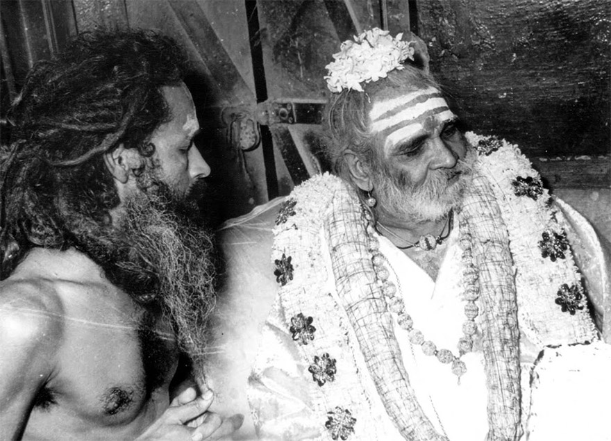Two admirers fell prostrate on the ground, stood up, touched his feet with veneration, and asked for sacred ash as prasad.