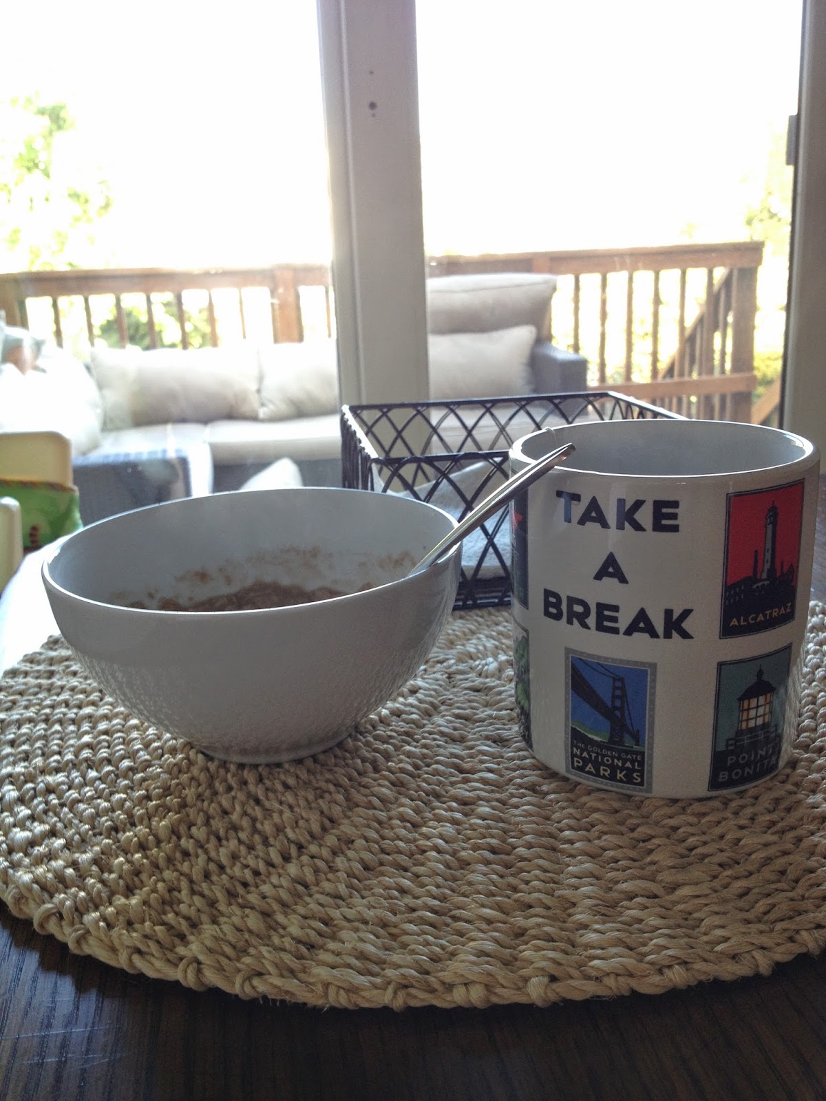 He reminded me that He is in control. That I needn't worry. When my eyes were focused intently on the people right in front of me... I got news that He was taking care of a few other people back at home. And the fact that someone in my community saw what was happening and told me because they thought it would encourage me... made me really happy to know that in my current community... people know the things that make me happy and would take the time to share them with me. God has His own plan and His own purpose and it is I who am invited to participate and share in His joy... not the other way around. I had breakfast and the message on my mug told me to take a break... and I felt that God was telling me to take a break as well. Just rest in His presence right now.