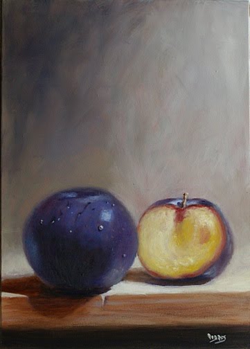 Back to fruits paintings plums are very nice to paint because of the different tones of purples and blue, .....