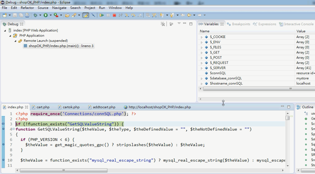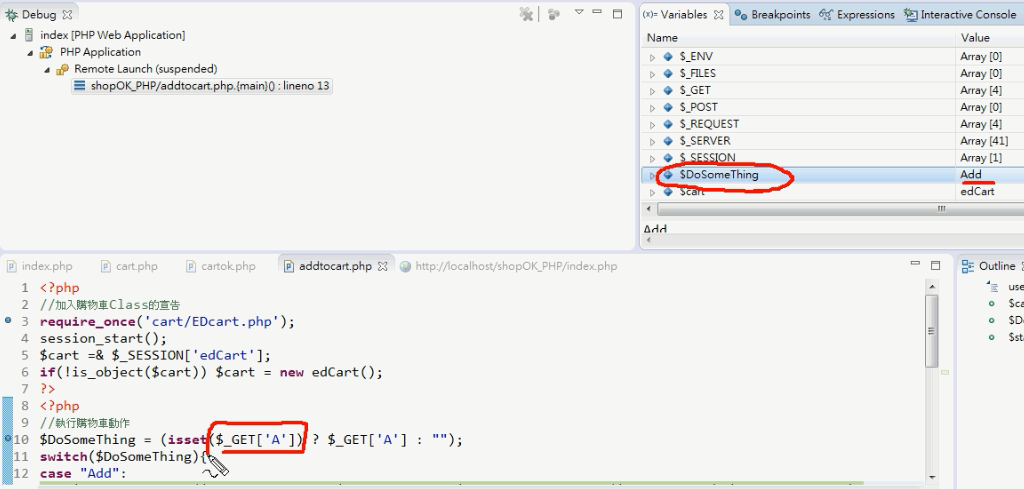 主要是一些購物車課程回顧與讓PHP能在ECLIPSE除錯,