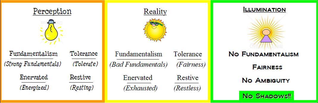 Allow me to illustrate the connotation of tolerance and the one-word oxymorons noted via an unnecessary visual which sheds some light on what lurks in the shadows: