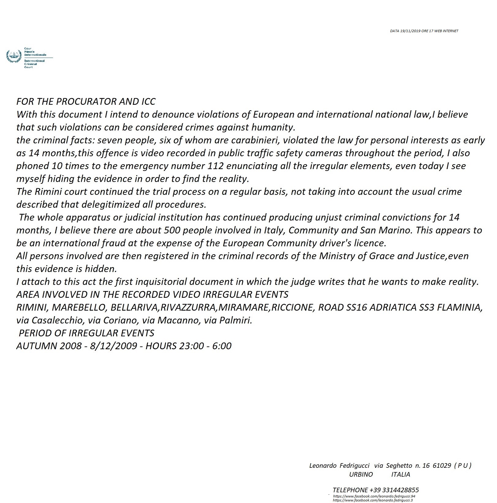 PER LA STORIA COMPLETA DELLE DENUNCE DA ME EFFETTUATE