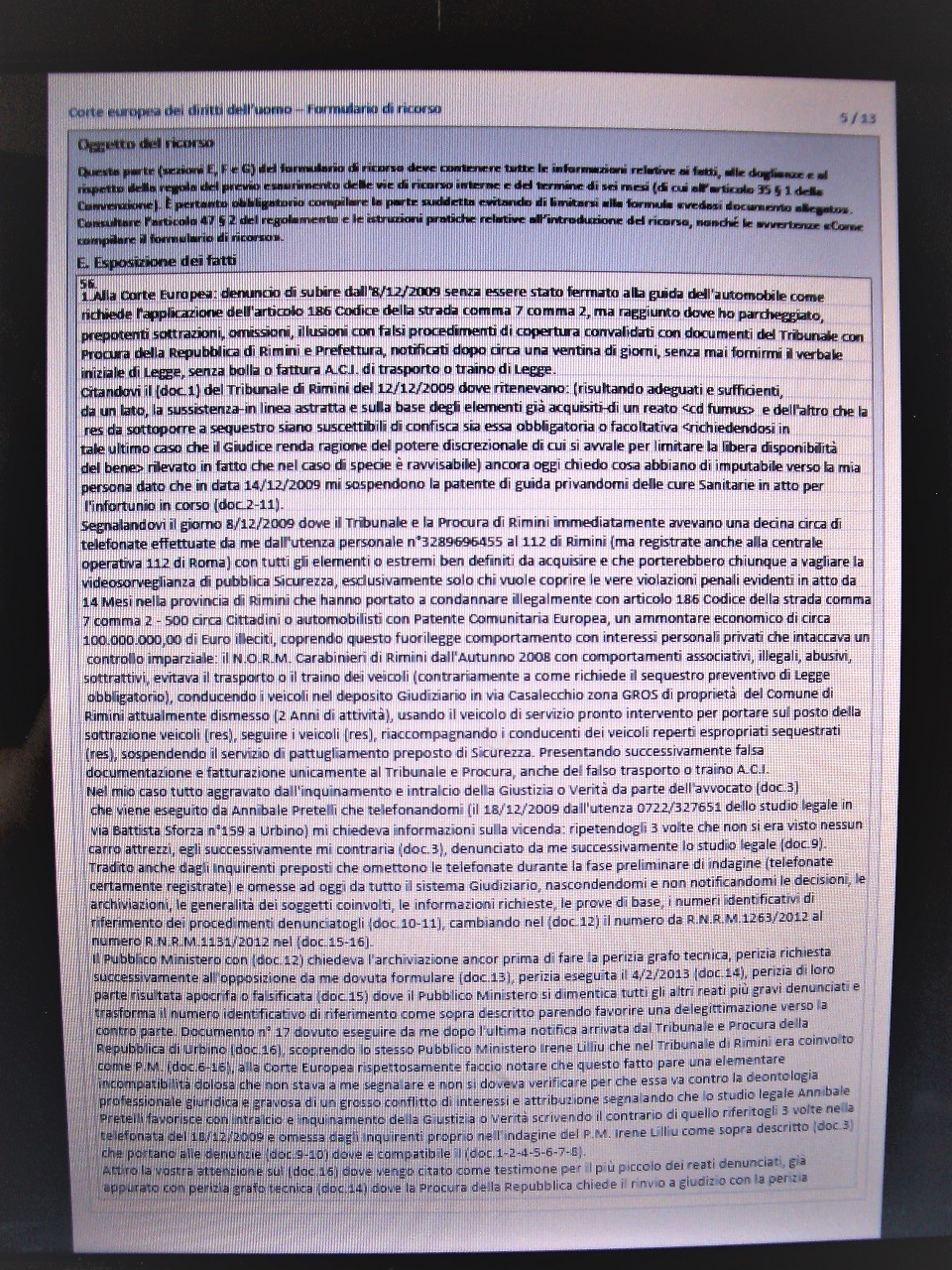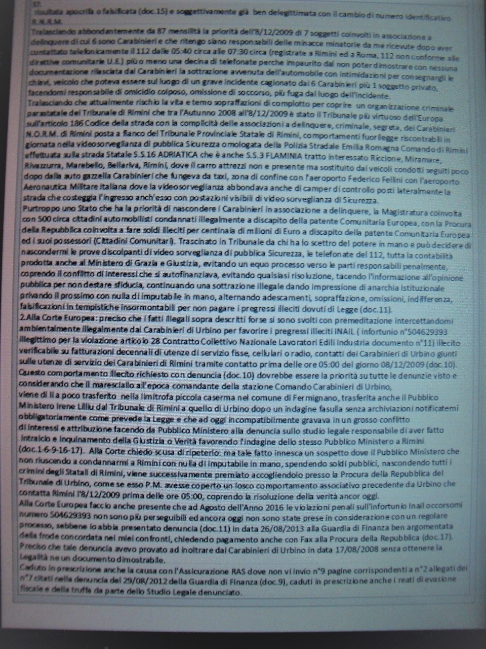 I #documenti hanno solo lo #scopo di #garantire le #richieste fatte nel #tempo, la #storia non cambia nel #testo - #scritto, la storia dall’ - #inizio appare subito chiara #verbalmente dove io #chiamo - #telefonicamente il #numero - #emergenza112 circa una decina di #telecomunicazioni - #eseguite l’8 Dicembre 2009 #festività - #religiosa dell’ - #Immacolata - #Concezione, riferendo il mio #nome, - #cognome, - #codice - #fiscale a memoria #targa del veicolo in #dotazione ai carabinieri che si stava allontanando, il numero della mia targa #automobilistica a memoria, riferendo che era sparita senza l’ausilio del carro attrezzi e che i carabinieri avevano voluto a tutti i costi le chiavi, non rilasciando alcun #cartaceo che #documentasse la #sottrazione, dichiarando immediatamente se qualcuno ci stava girando in zona GROS e che potrebbe #investire qualche persona (trans), dove io non potrei #dimostrare che non ero io alla guida è #responsabile di un #reato più grave da me non compiuto.