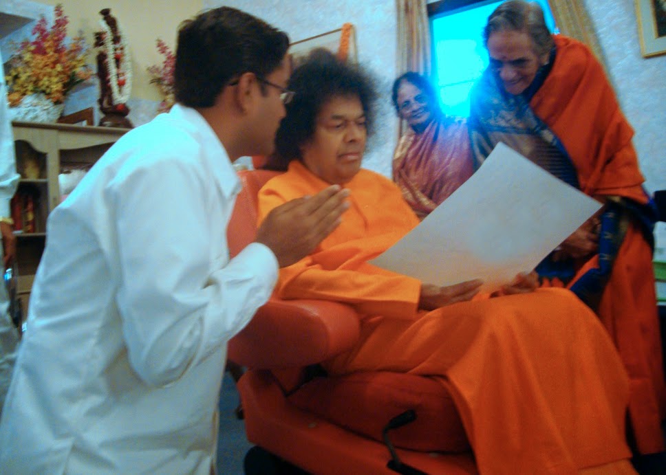 | Showing Swami the picture of one of the MBA teachers, Mr.Sairam |