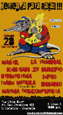 Fecha: 28 de Noviembre 2009Lugar: "LA CATO BLUE" -Av. San Jeronimo 422 Umacollo, a media cuadra del semáforoHora: 10:00 pmEntrada: S/. 5.00