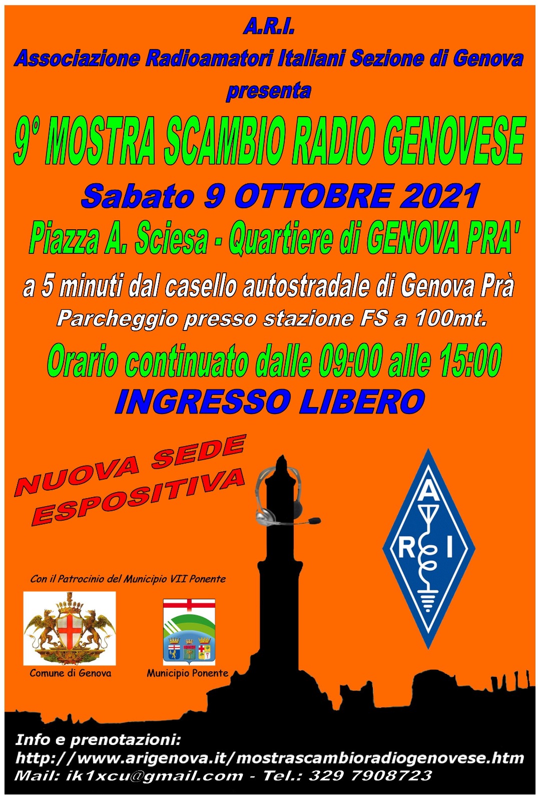 Per tutti gli OM, SWL e radio appassionati pur non potendo accedere al Palacep per l'attuale inagibilità dovuta ai lavori di ristrutturazione e con tutte le limitazioni derivanti dalla normativa vigente a tutela della diffusione del Covid-19, la nostra Sezione ARI Genova è riuscita ad organizzare per il 9 ottobre 2021, la NONA MOSTRA SCAMBIO RADIO GENOVESE.