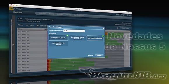 - Reportes personalizados: Con nuevos formatos pre-configurados, mejores filtros, varias plantillas y la posibilidad de exportar el informe en una gran variedad de formatos (incluido PDF) nessus 5 ha conseguido facilitar un poco mas al profesional de seguridad el a veces tedioso pero necesario proceso de elaboración de informes.