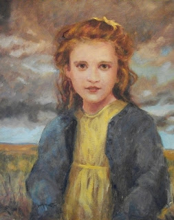 This is the painting I have been working on in my adult class. We all started with a portrait originally painted by Bouguereau and then added our own take on it. I love to paint the Oklahoma sky so I put my little girl in a prairie dress and sweater and put her in an Osage landscape w a beautiful sky. I just posted this to ebay, both in my ebay gallery and on auction through my ebay gallery. To visit the gallery,
