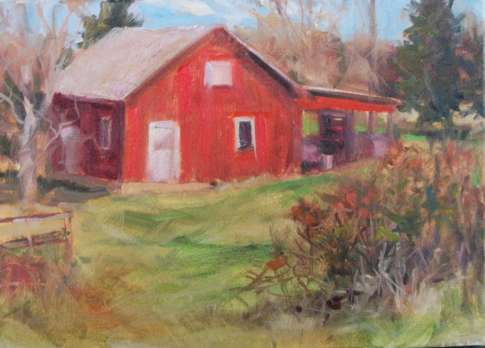 I found this little barn on my way to school and thought I would stop over on the weekend to paint it. Goodness, you would think that I was the only game in town. So many people felt like they needed to pull over to check out what I was up to... Maybe it was all those " Posted, No Trespassing " signs :-)