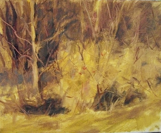 I am beginning to work on a project of painting different scenes within my state of Oklahoma for a show that I will have at the State Capital Gallery in the summer. It is pretty colorless and bare out there right now but fortunately the sun began to set as I sketched and I was able to capture ( I hope ) the pretty trees as they turned from their pale gray to bright yellow. to bid on this painting in my ebay auction, or just to visit my ebay gallery...