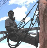 The sculpture at the center of the legal dispute is modeled on a photograph of a high scaler, a special breed of Hoover Dam laborer willing to clear loose rock from the walls of Black Canyon while dangling from ropes tied to clifftop eye bolts.