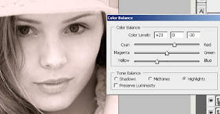 Inside the color balance tool, you can see that you can modify the shadows, midtones, and highlights. We will be working with only the shadows and highlights. What we’re going to do with this tool is alter the color balance of the shadows and highlights so that it creates a color tint.
