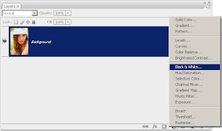 First, if you didn’t open a black and white photo, you need to convert the image to black and white. There are many ways of doing this but the easiest method with Photoshop CS3 is to add a Black & White adjustment layer. If you’re using an older version of Photoshop, you can also use:
