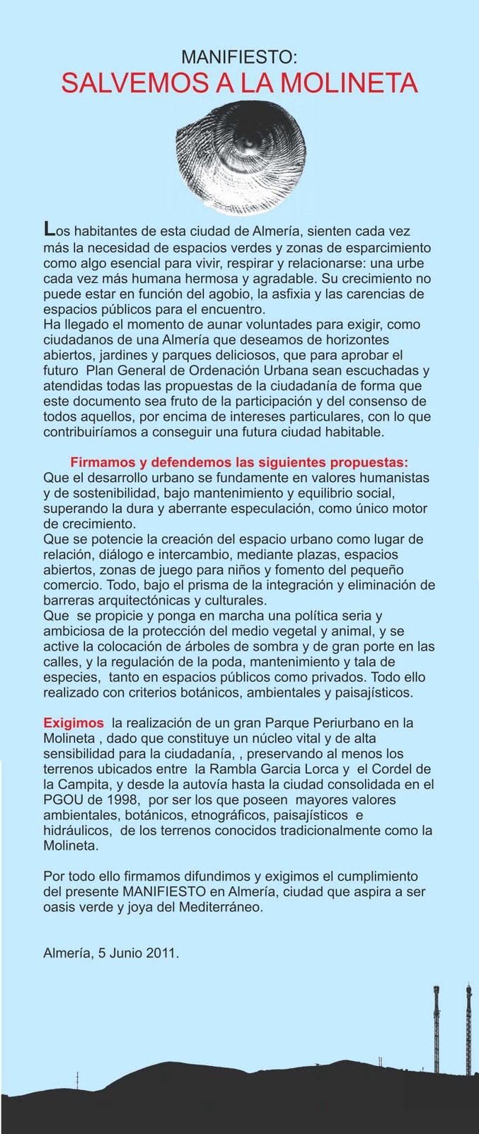 Asunto: MANIFIESTO SALVEMOS LA MOLINETA