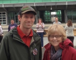 Eric's teaching techniques were incredible. He was able to get and hold their attention and stimulate some spirited discussion even though the lecture hall held over 170 students (not all present this late in the semester). I particularly liked how he exhorted them to hold up their phones over their heads and then put them away in their pockets, followed by a dramatic closing of the laptops. It works! I think we all know the addictive pull of our technological toys and I liked the discussion on this effect on communication, relationships and wellness.