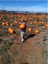 | Preston followed the rules as well. He picked his pumpkin and carried it like his brother. |