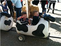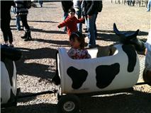 | Preston didn't get to ride the cow train last year so he was extra-excited...So excited that he would NOT sit down, so he did not get to ride this year either. |