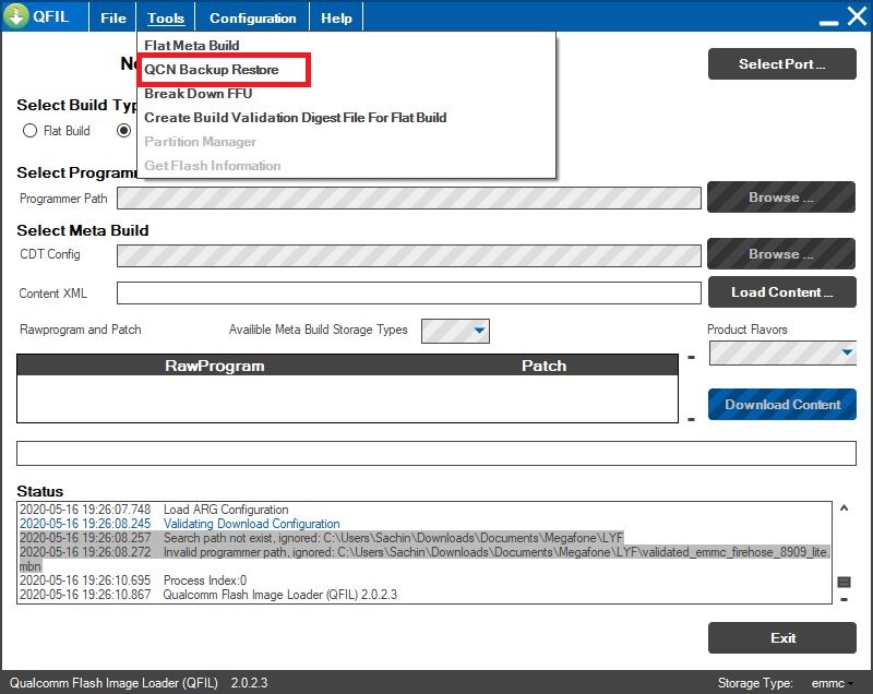 Then Go to >> QCN Backup Restore