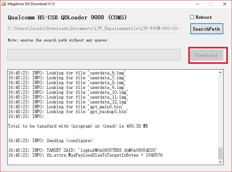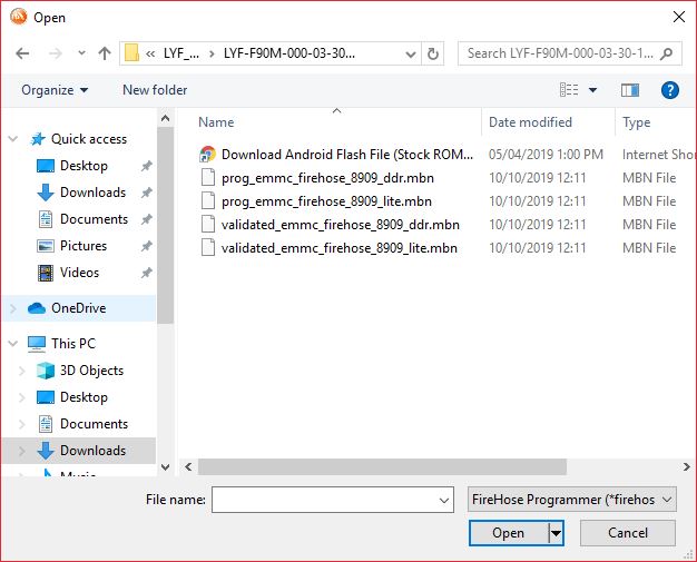 Choose The Following File for Flash "validated_emmc_firehose_8909_lite" from firmware directory.