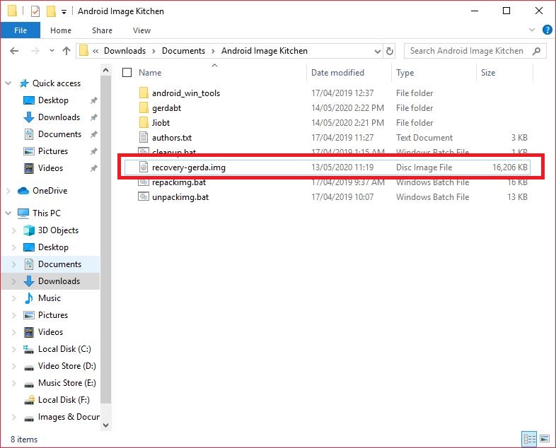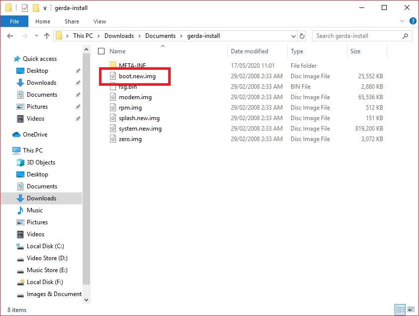 Step 3: Unzip Downloaded "gerda-install-xxxx.zip" and copied "boot.new.img" to "android image kitchen" Folder.