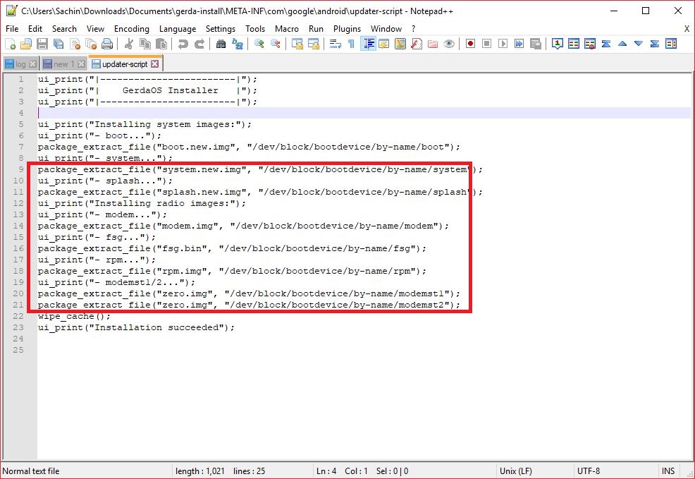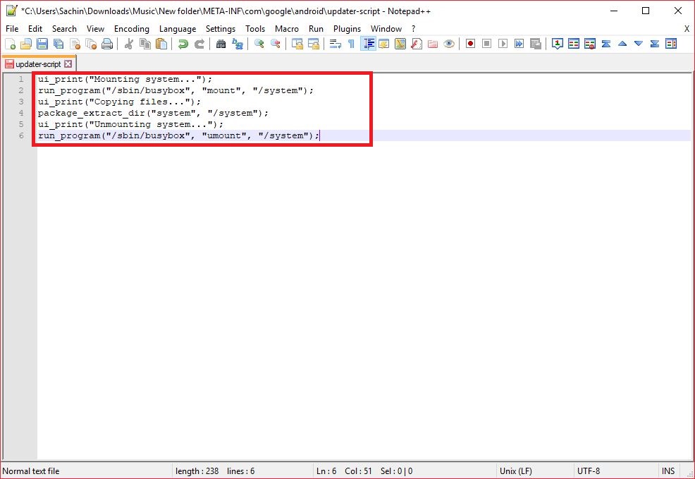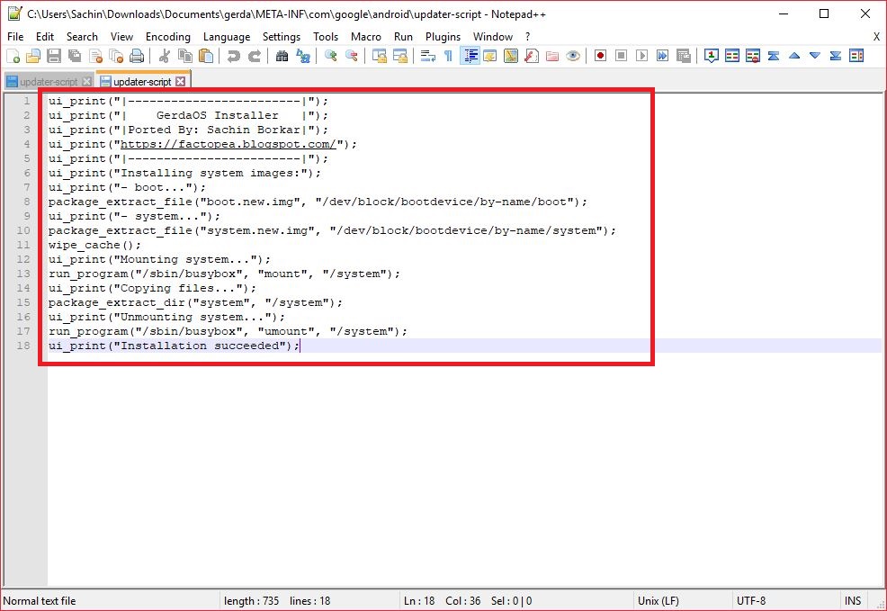 Step 3: Goto "META-INF/com/google/android" Folder and Open "updater-script" File in Notepad++