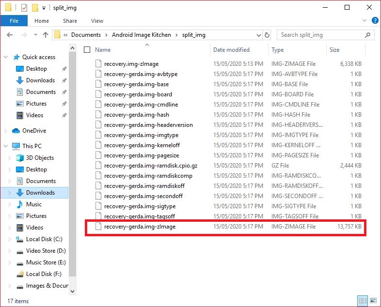 So I copied our previous backed-up "recovery.img-zImage" into split_img Folder